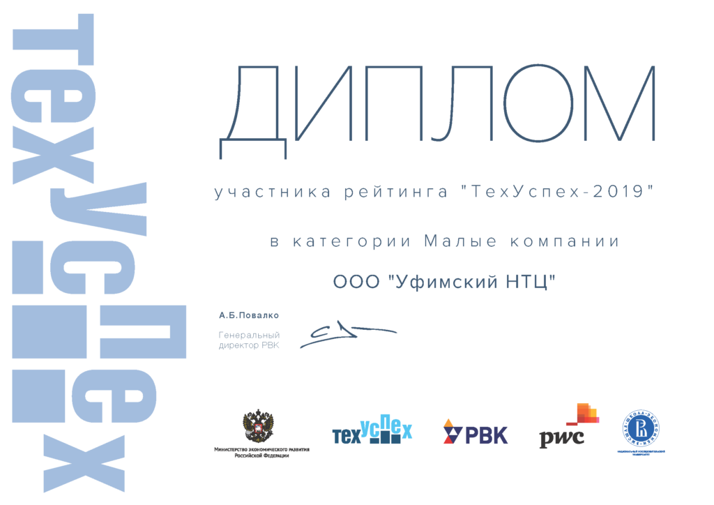 ООО “Уфимский НТЦ” вошел в ТОП100 рейтинга “ТехУспех”