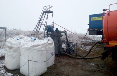 - Закачивается высоковязкая композиция, включающая реагент NGT-Chem-2 с добавками структурирующих наполнителей – микрокальцита и лигносульфонатом для понижения проницаемости трещин и суперколлекторов