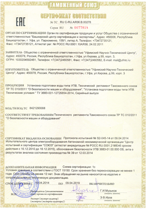 Уфимский научно-технический центр осуществляет поставку комплекта оборудования для подготовки пластовой воды в соответствии с требованиями ОСТ 39-225-88 и услуги шефмонтажа с последующим выводом установки на режим.